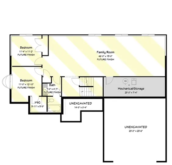 • The lower level can be finished for an additional 1,251 sq ft of living space, including a large family room, two more bedrooms, and a compartmentalized bath